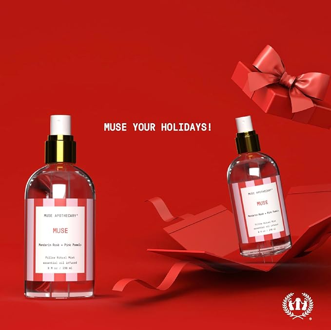 Muse Apothecary Pillow Ritual - Aromatic, Calming and Relaxing Pillow Mist, Linen and Fabric Spray, Infused with Natural Essential Oils - Great Valentine's Day Gift - 8 oz, Mandarin Rosè + Pink Pomelo