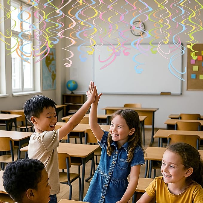 - LIGHT & CHEERFUL COLOR MIX – Features soft pastel tones in pink, blue, yellow, green, orange, and lavender. These vibrant swirls add lively motion and a festive pop of color to any indoor party space.