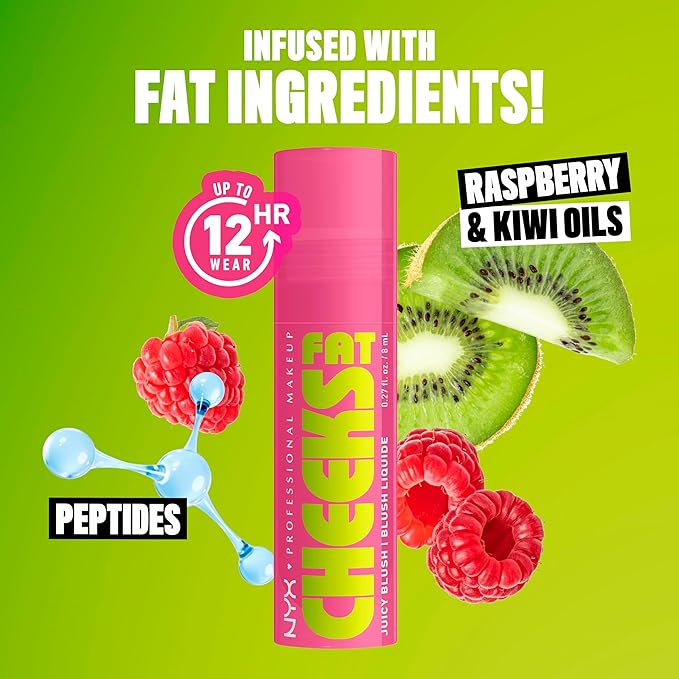 - Dewy Liquid Blush For Cheeks: Get a FAT juicy makeup blush look in one swipe and take your cheeks from flat to FAT, with this buildable formula, blendable texture and juicy hydration. See up to 24HR hydration and up to 12HR wear in 8 shades