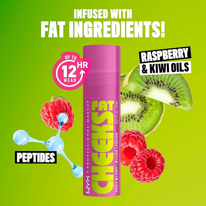 - Dewy Liquid Blush For Cheeks: Get a FAT juicy makeup blush look in one swipe and take your cheeks from flat to FAT, with this buildable formula, blendable texture and juicy hydration. See up to 24HR hydration and up to 12HR wear in 8 shades