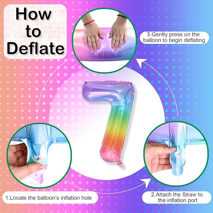 - 【Number 7 Balloon】: This 40 inch rainbow number foil balloon comes as a complete set, including one balloon numbers and a straw for easy inflation. Its large size ensures it stands out at party, creating a visually striking focal point to make your special occasion even more memorable.