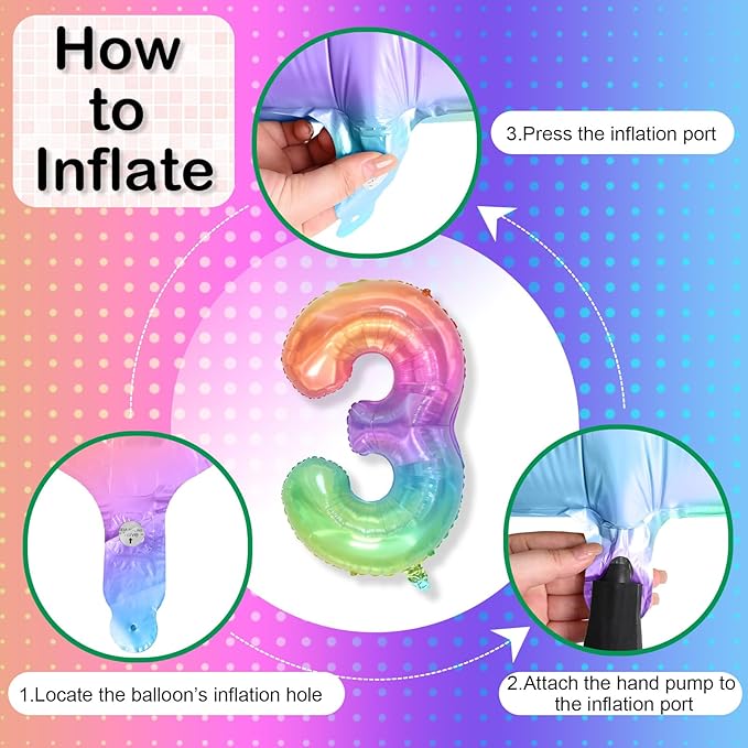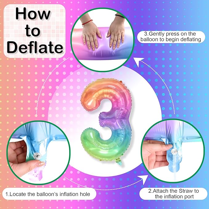 - 【Number 3 Balloon】: This 40 inch rainbow number foil balloon comes as a complete set, including one balloon numbers and a straw for easy inflation. Its large size ensures it stands out at party, creating a visually striking focal point to make your special occasion even more memorable.