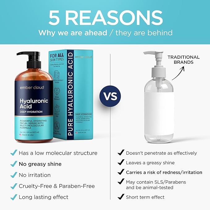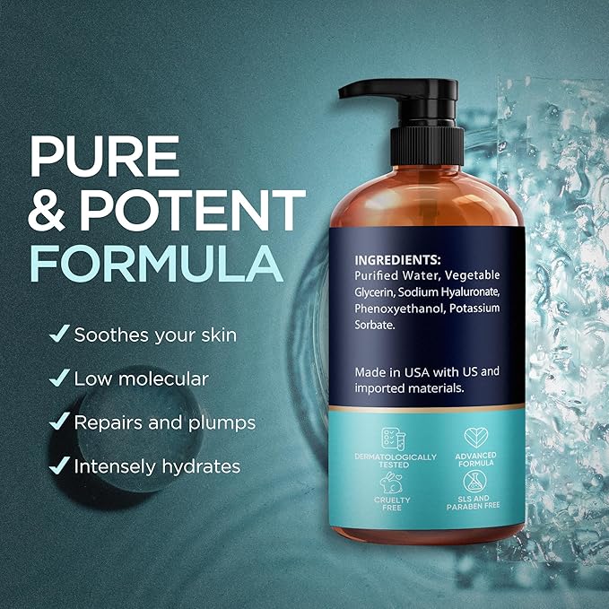 Hyaluronic Acid Serum for Face (8 Oz) for Skin and Lips - Hydrating & Moisturizing Serum for All Skin Types, Paraben-Free & Fragrance-Free