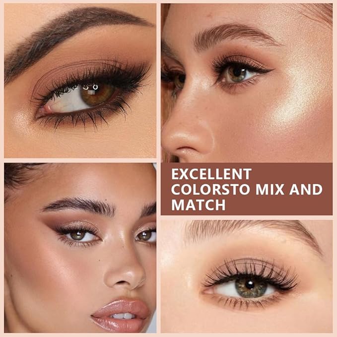 - Matte & Shimmer Combo: Offers a balanced mix of soft matte and glowing shimmer finishes for both contouring and highlighting your eyes.