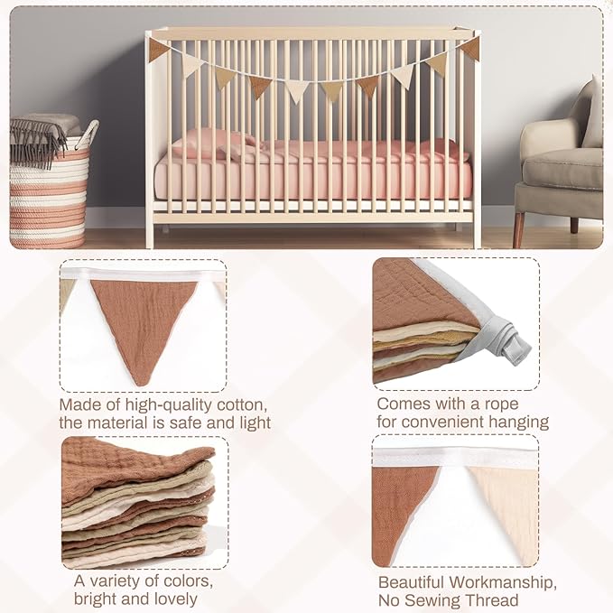 - Reliable and Premium : Made of high-quality, soft cotton, this 2PCS pennant banner set is strong, lightweight. It’s reusable and perfect for adding a cozy touch to any nursery, playroom, or party. Comes with string for easy hanging