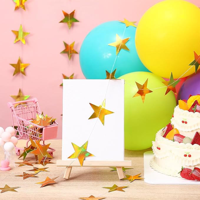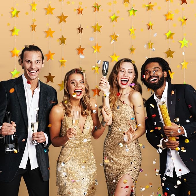 Patelai Glitter Star Garland Banner New Years Decor 130 Feet Star Hanging Banner Twinkle Backdrop for Birthday Classroom Wedding Halloween Christmas Party Supplies(Iridescent Gold)