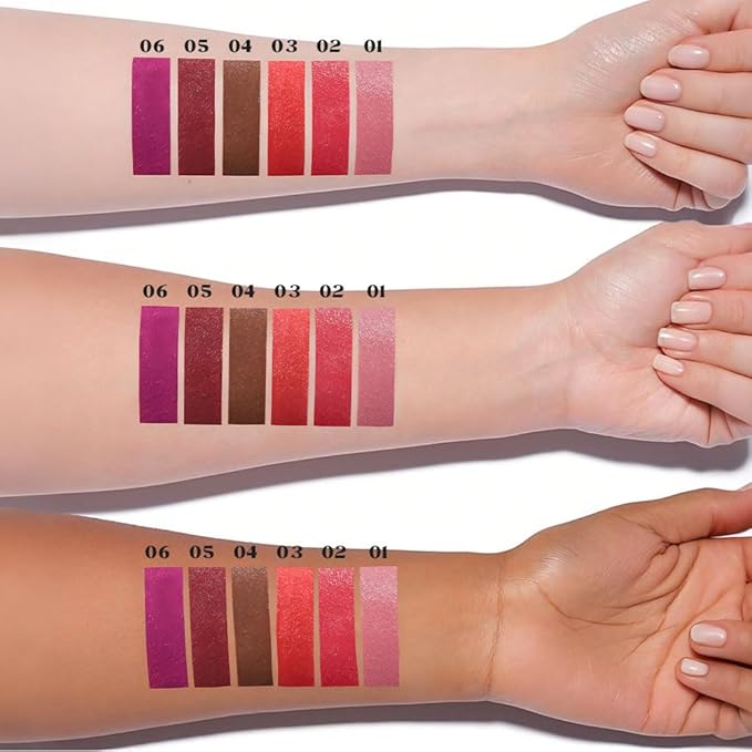 - [6 Bold and Vibrant Shades to Fit Every Mood] From classic lavender to bold ruby red and vibrant plum, this lipstick set is versatile enough to suit every skin tone and occasion. Whether it's date night, work chic, or weekend glam, express yourself with color.