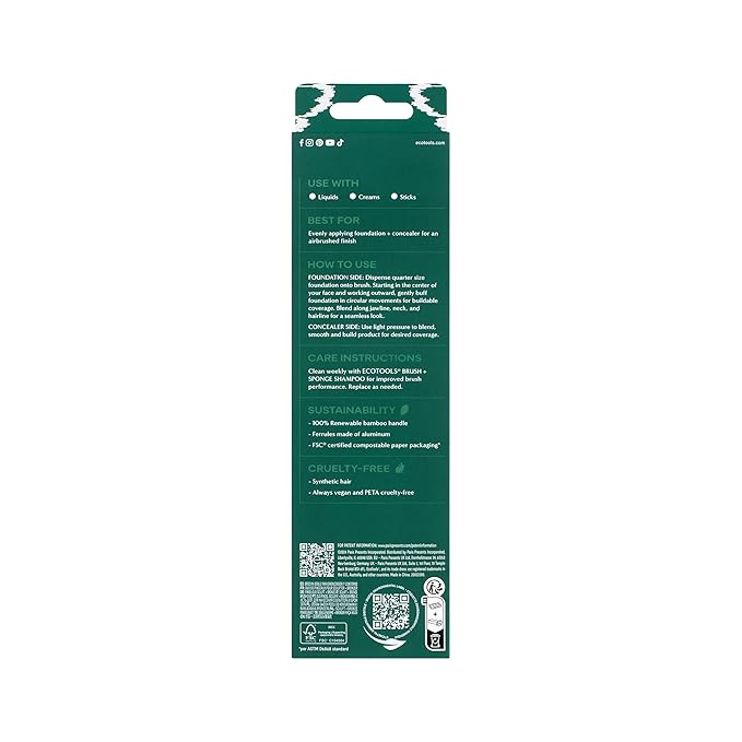 EcoTools Blend + Conceal Dual-Ended Makeup Brush, Foundation & Concealer Brush For Liquid & Cream Formulas, Face Makeup Brush, Synthetic Bristles, Vegan & Cruelty-Free, Travel & Eco-Friendly, 1 Count