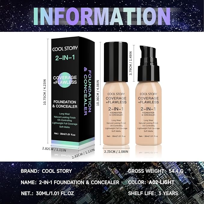 - DUAL FUNCTION: 2-in-1 formula serves as both foundation and concealer, providing versatile coverage in one convenient product