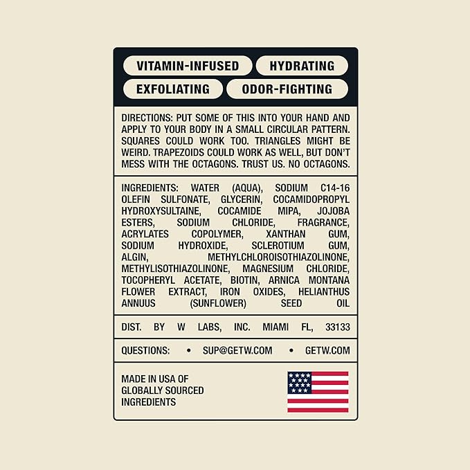 W By Jake Paul Exfoliating Body Wash for Men, Vitamin-Infused, Hydrating Shower Gel, Deep Woods, 18 fl oz (Pack of 2)