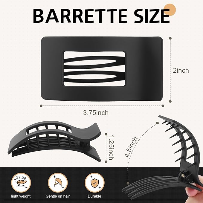 - Lightweight and Durable,Firm Grip:These flat calw clips is made of high-quality, lightweight material for durability and comfort. Feature a multi-tooth, non-slip design that firmly holds thick or thin, long or short, straight or curly hair, ensuring a flawless hairstyle in all seasons. It's also incredibly difficult to break, making it perfect for activities like driving, yoga, work, and lounging at home.