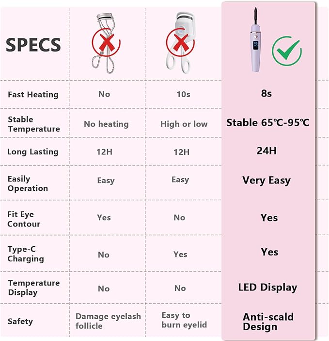 - 4 Temperature Modes - Equipped with 4 temperature settings ranging from 65°c to 95°c, our heated lash curler can create amazing curling effect for different types of eyelashes