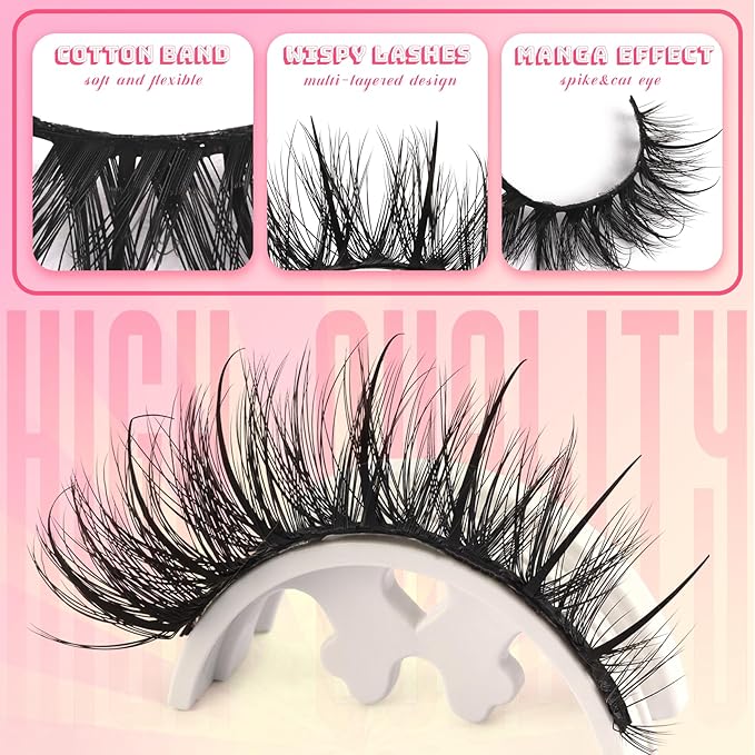 Ahrikiss Lashes Fluffy Eyelashes Wispy False Eyelashes Spiky Manga Lashes D Curl Cat Eye Lashes Natural Look 8D Volume Anime Fake Eyelashes Faux Mink Lashes 14 Pairs Pack (Spike02)