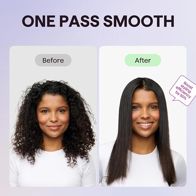 - One-Pass Straightening, Powered by Steam: Steam styling means fewer passes, less heat, and smoother results. Our Hydro-Infusion technology transforms water into a fine, heated mist that deeply hydrates each strand while you style. The result? Silky, frizz-free hair in a single glide. No dryness, no dullness, just shine