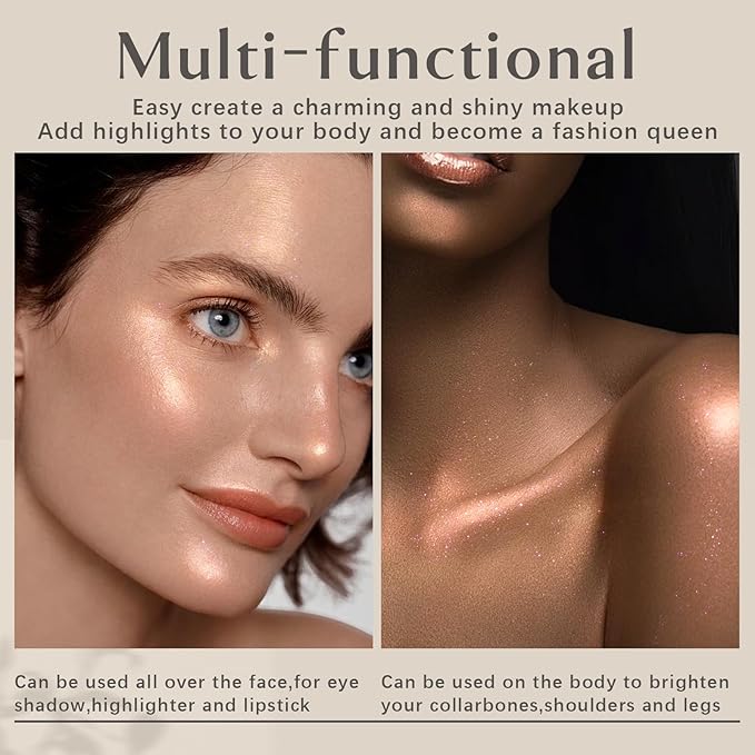 - Multi-Usage: The way of using fingers to apply is better than using brush. It can be used as eye shadow, face highlighter or body glitter to create a holographic sparkling effect from head to toe