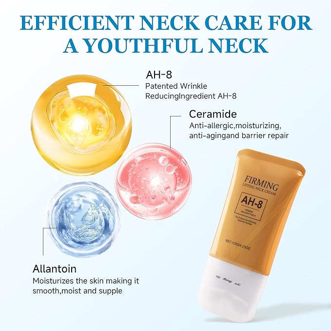 - Targeted Neck Care for a Rejuvenated Look Experience a dedicated skincare routine for your neck and décolleté. This powerful set pairs a rich, firming cream with intensive collagen masks, both infused with a blend of AH-8, Ceramide, and Hyaluronic Acid to help improve the appearance of fine lines and support skin elasticity.