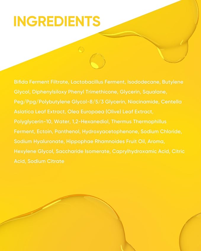 - [ SERUM + OIL FOR 2X BENEFITS ] Shake to activate our unique two-layer formula! The water-based serum (with Bifida Ferment, Ectoin, and Centella) hydrates and repairs. The lightweight oil (with Squalane and Sea Buckthorn) locks in moisture and adds glow. Together, they work synergistically for deep nourishment and a radiant finish.