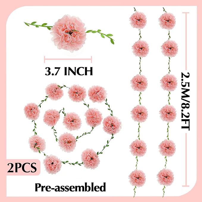 - Easy DIY and Instant Beauty: Each set includes two pre-assembled 2.5m garlands with fluff-ready 5-inch pom poms—simply unfold, fluff, and hang for instant party magic!