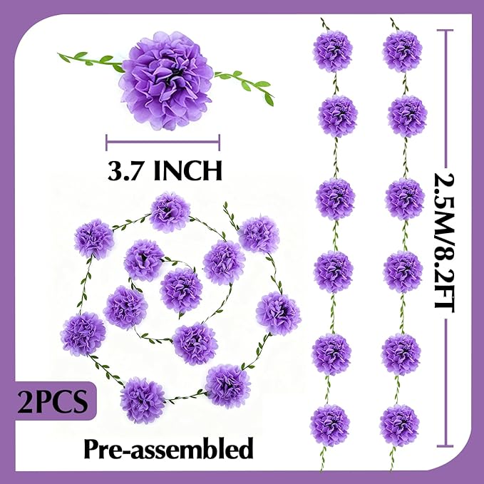 - Easy DIY and Instant Beauty: Each set includes two pre-assembled 2.5m garlands with fluff-ready 5-inch pom poms—simply unfold, fluff, and hang for instant party magic!