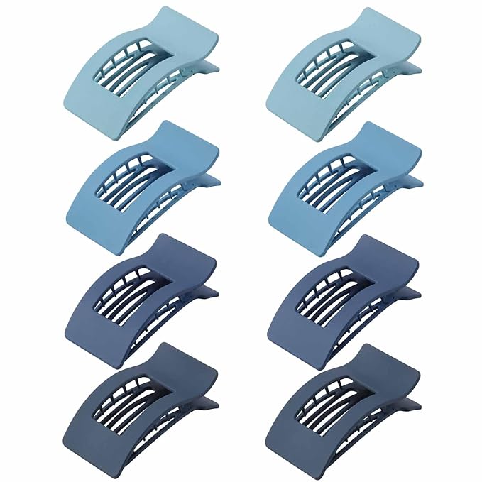 8 Pack French Flat Hair Clips for Women – Large Matte No-Slip Claw Barrettes for Thick & Thin Hair, Strong Hold Styling Accessories (Blue)