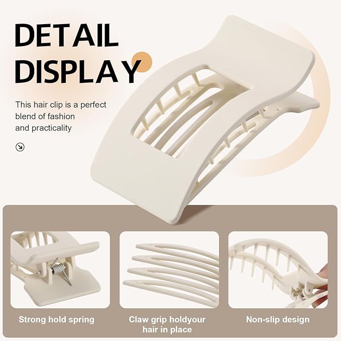- Lightweight and Durable,Firm Grip:These flat calw clips is made of high-quality, lightweight material for durability and comfort. Feature a multi-tooth, non-slip design that firmly holds thick or thin, long or short, straight or curly hair, ensuring a flawless hairstyle in all seasons. It's also incredibly difficult to break, making it perfect for activities like driving, yoga, work, and lounging at home.