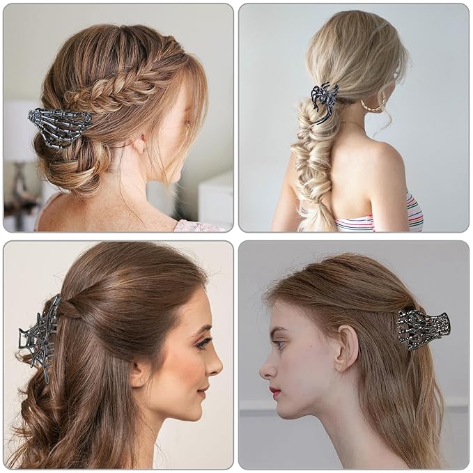 - Bold Gothic Style: Add a bold gothic touch with this 6 Pack Skull Skeleton Hair Claw Clips set, featuring goth hair clips perfect for Halloween, cosplay, or punk fashion.