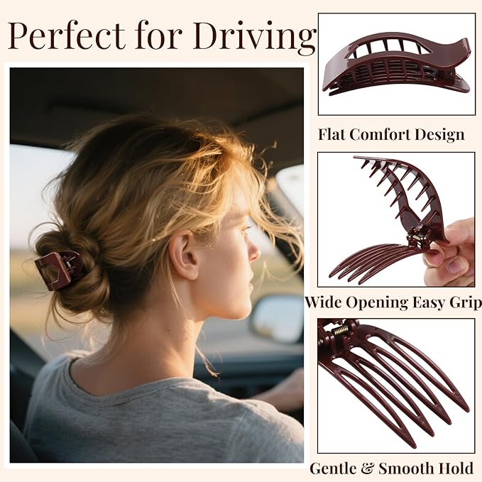- Low-Profile Comfort for All-Day Wear: Say goodbye to bulky clips that dig in or shift around. These glossy hair clips are designed with a smooth, flush shape that lies comfortably against your head—even when leaning back on chairs or driving. From early meetings to evening dinners, they deliver effortless hold without discomfort.