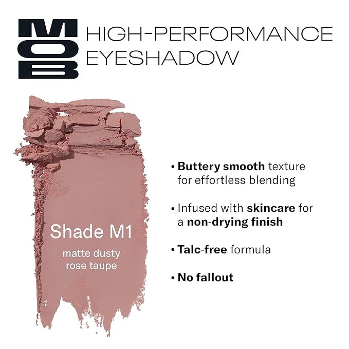 MOB Beauty Eyeshadow M1 Matte Dusty Rose – Cool-Toned Soft Pink Shade for Crease or All Over Wash, Talc-Free Vegan Cruelty-Free Skincare Infused Long Wear Sustainable Refillable Compact