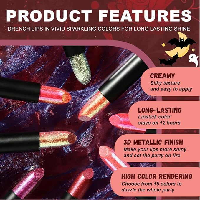 - Multicolor:Our shimmery metallic lipsticks come in a variety of unique shades,carefully assembled into the most popular colors for girls,from nude to pink,purple,brown to red,to complement a variety of skin tones,to fully meet your needs