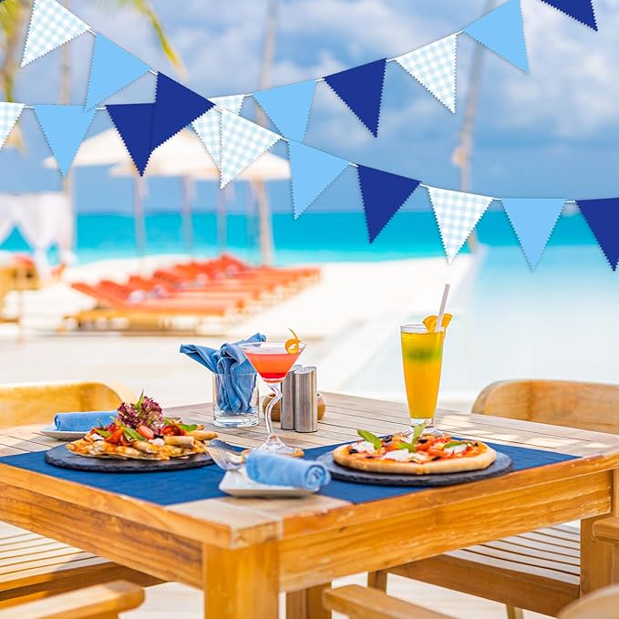 - DELICATE DESIGN: The triangle flags adopt solid or plaid design mainly colored in blue, fresh and eye-catching, will nicely enhance the fun and pleasant atmosphere