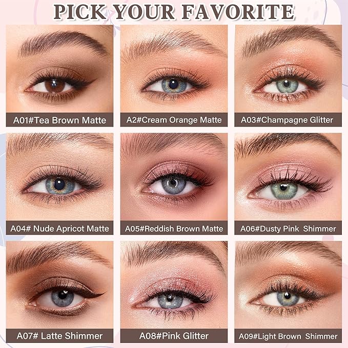 - Easy to Use: Offers highly pigmented, blendable shades in matte and shimmer glitter finishes ,Buildable formula transitions from subtle daytime sheen to bold smoky glitter—ideal for hooded lids or sheer-to-statement looks