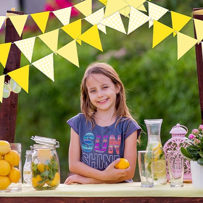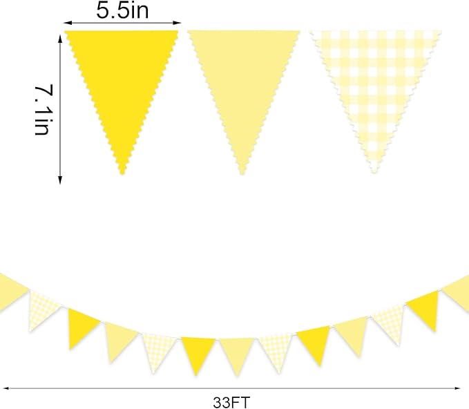 33 Ft Hanging Banner Decoration Triangle Flag Yellow Pennant Plaid Fabric Bunting Garland for Birthday Baby Shower Party Supplies