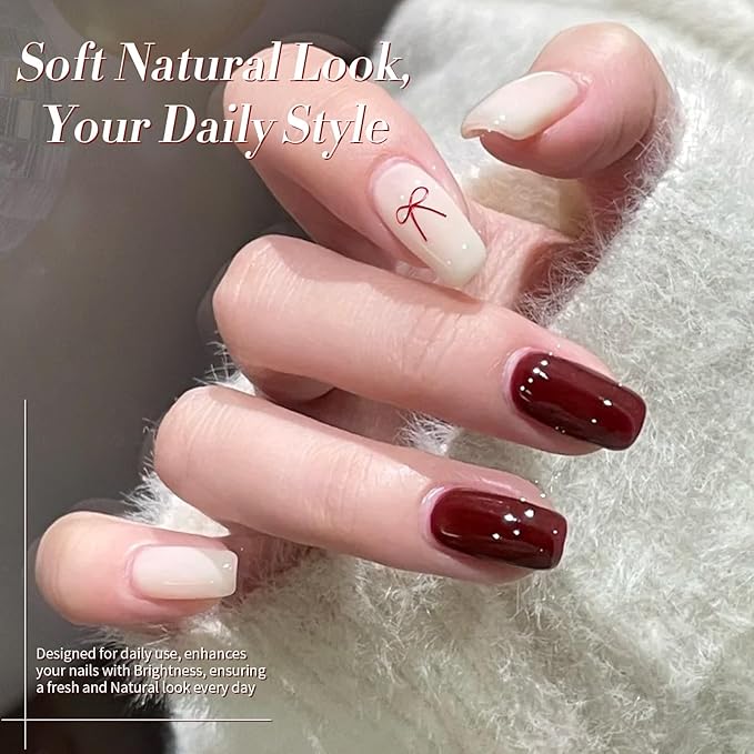 - EASY APPLICATION AND GOOD TENACITY: The series of Christmas red gel nail polish set is long lasting for 21+ days with perfect shine or matte under proper application - With base gel top coat under the full application process.High durability and intense pigmentation makes it stay last longer and brings you brilliant shine finish.