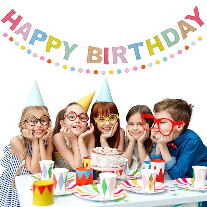 - [3D and Colorful] Felt happy birthday banners come in Macaron Candy Colored, vivid hues and fun designs. It creates great party atmosphere and lights up happy birthday decor beautifully