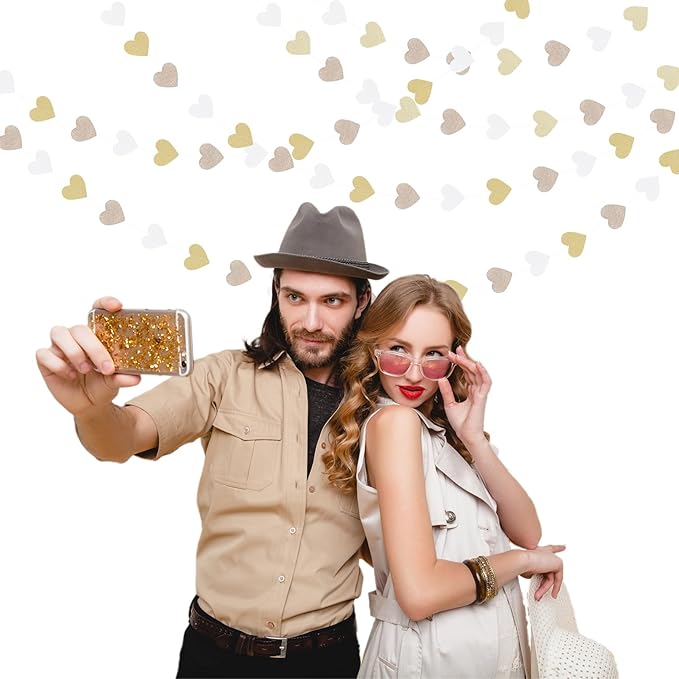 - 【Package Contains】4 sets of the white gold champagne heart party banner garland,each is 13.1 feet/ 4 meters long, total length is 52.5 feet/ 16 meters.Every Banner has 40pcs heart,the size is 1.97”.