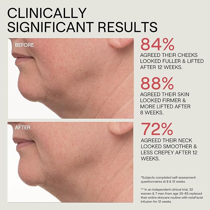 - Revolutionary, Bioengineered Micro-Collagen Technology: Unlike traditional bovine or hydrolyzed collagen that cannot be absorbed by the skin, the InstaFacial Infusion collagen serum for face contains bioengineered, human identical microcollagen peptides precisely broken down into small fragments for optimal skin absorption. These peptides are molecularly identical to the body’s own collagen, allowing the skin to readily recognize and utilize them to stimulate collagen synthesis, improve firmness, and enhance elasticity both instantly and over time.