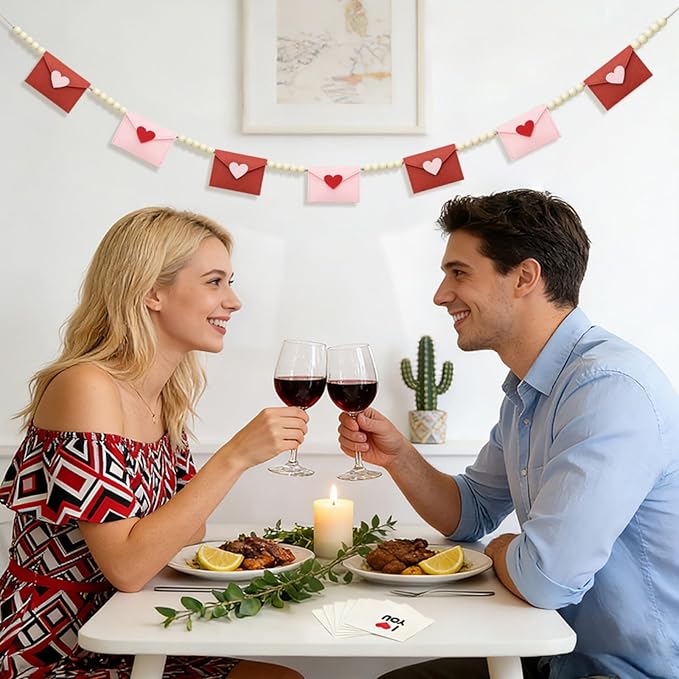 - Valentines Day Decorations with Felt Hearts & Envelopes – Add charm with our felt heart garland featuring red hearts and pink envelopes. Perfect valentines day garland for valentines decorations for the home or valentines garland for mantle.