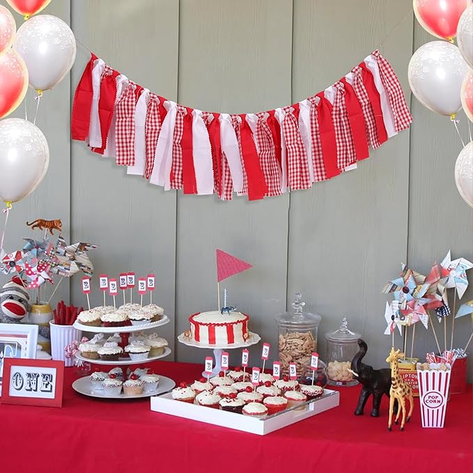 - Red & White Plaid Banner/Garland: Make His First Birthday Stand Out. Crafted From Charming Red Plaid Fabric, This High Chair Banner Perfectly Blends Classic Style With Playful Charm. Whether Planning A Picnic Theme, Rustic Gathering, Or Vintage-Inspired Birthday Party, This Versatile Decoration Adds A Pop Of Color.