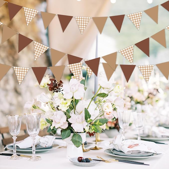 - DELICATE DESIGN: The triangle flags adopt solid or plaid design mainly in brown, festival and eye-catching, will nicely enhance the fun and pleasant atmosphere