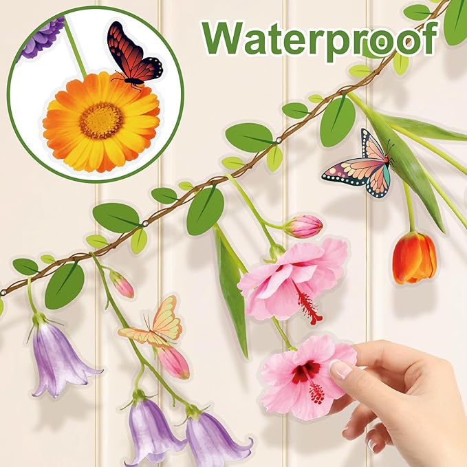 - Package Includes: 2PCS of 7.9ft-long plastic flower garlands, each garland is made up of 12 flowers. The wildflower banner includes rich flower shapes and beautiful butterflies, which can easily enhance your party atmosphere.