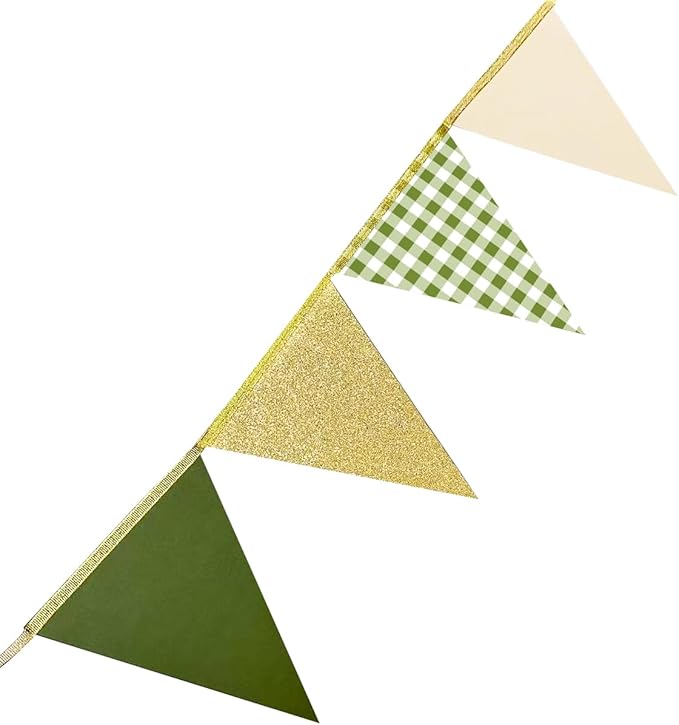 - Material and Handmade - Our sage green plaid gold triangle flag are made of quality cardstock and glitter paper, carefully hand-made and machine-sewn together with gold glitter ribbon,durable and reusable.