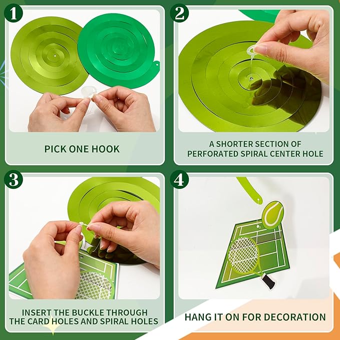 - TENNIS DESIGN: Our party decoration set adopts patterns of tennis balls, tennis rackets, tennis courts, tennis players and trophy, combined with delicate hanging swirls in light green and dark green, easily enhance the party vibes and draw attention of people